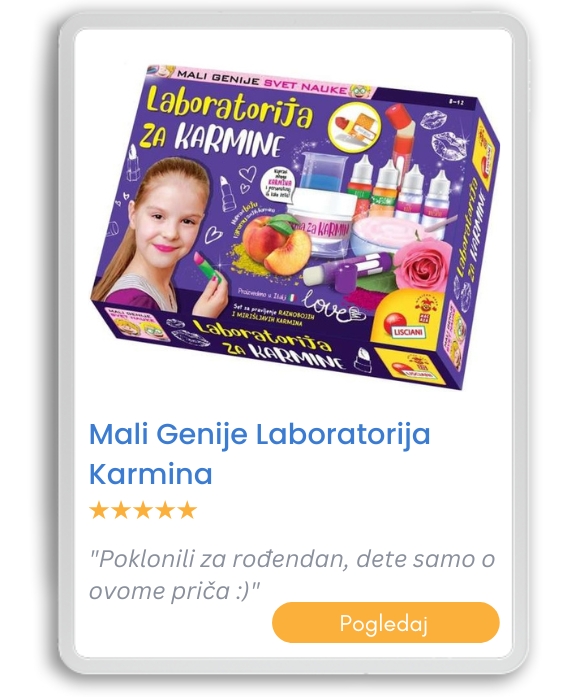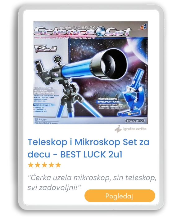 Šta kupiti devojčici od 9 godina koja voli nauku? Najbolji poklon je nešto što dodatno podstiče na razvoj interesovanja, kao što su teleskopi i mikroskopi. Tu su i razni Lisciani setovi u kutiji, eksperimenti za decu i edukativni kompleti. Možda bi se ona najviše obradovala nekom tako neverovatnom poklonu.