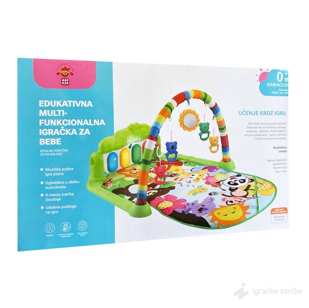 Baby Podloga Gimanastika PIANO je savršeno igralište za Vašu bebu i najbolji poklon za svaku novu mamu! Ova podloga za bebe ima mnoge zanimljive funkcije, a piano dirke koje proizvode razne zvukove će podstaći bebu da ih udara nožicama i tako vežba. Kucanjem tastera Vaše dete radi vežbe istezanja što povećava fleksibilnost i motoričke sposobnosti. Zvukovi muzike, svetla i boje pomažu u razvoju bebinog čula sluha i vizuelnih sposobnosti.