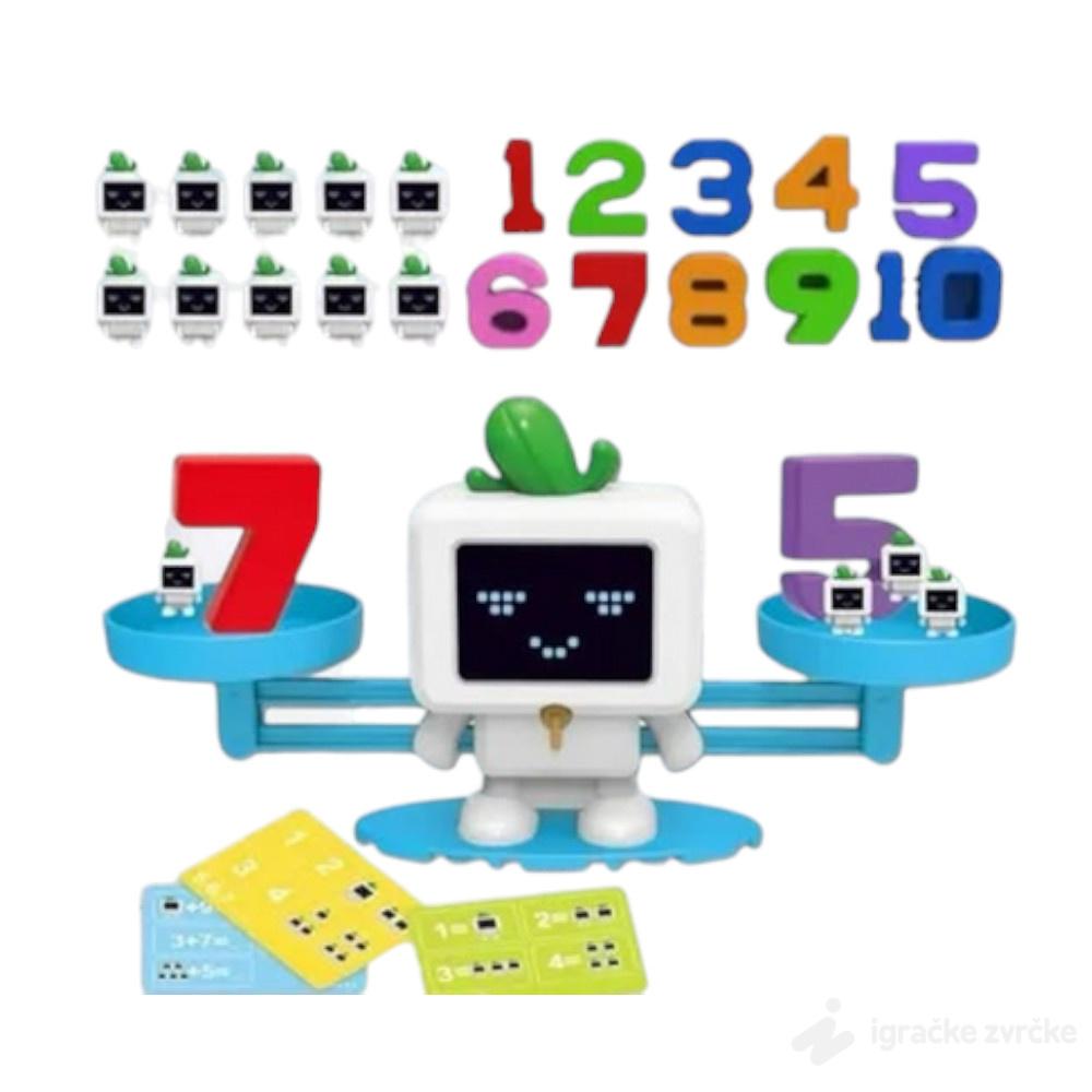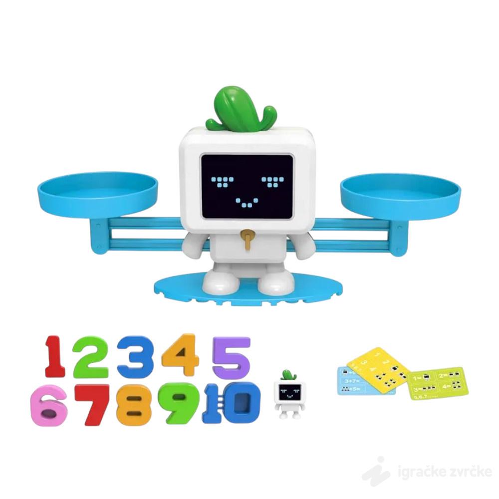 • Komplet uključuje: vagu, brojeve od 1 do 10, tegove u obliku malih robota, karte za igranje