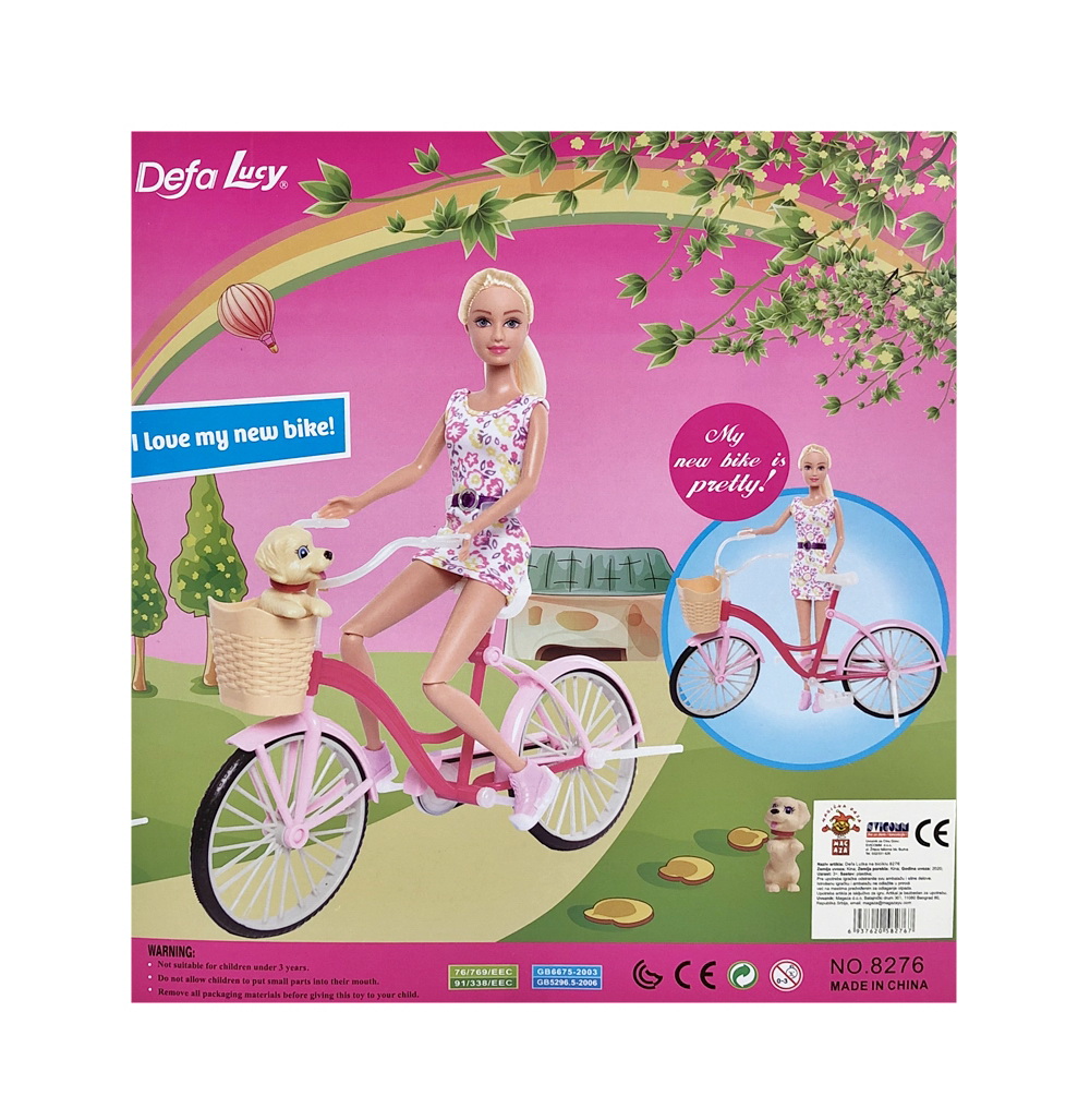Presladak set za igru, barbika sa biciklom i ljubimcem će biti super poklon za Novu godinu ili rodjendan! Ova barbika ima predivan bicikl sjajnog dizajna sa korpicom i dodacima. U korpi vozi svog preslatkog ljubimca na izlet ili gradsku vožnju. Ovakvi setovi razvijaju maštu i kreativnost igre. Barbika na biciklu sa kucom će obradovati svaku devojčicu! Dimezije pakovanja: 30x32x10cm.