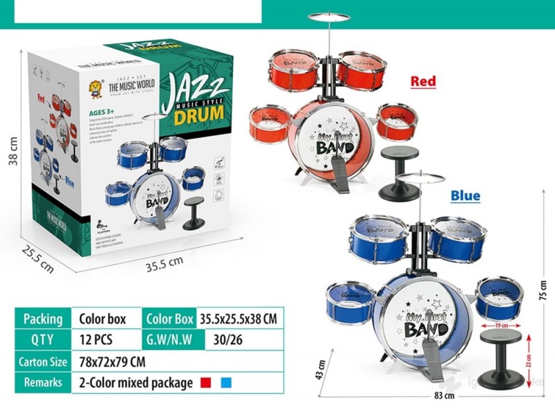 MUZIKA JE BITNA Dečiji bubanj razvija motoriku i ritam kod dece, ključne veštine koje su potrebne u životu. Preporučen uzrast: 3+. Dimenzije sklopljene igračke 75x83x43cm.