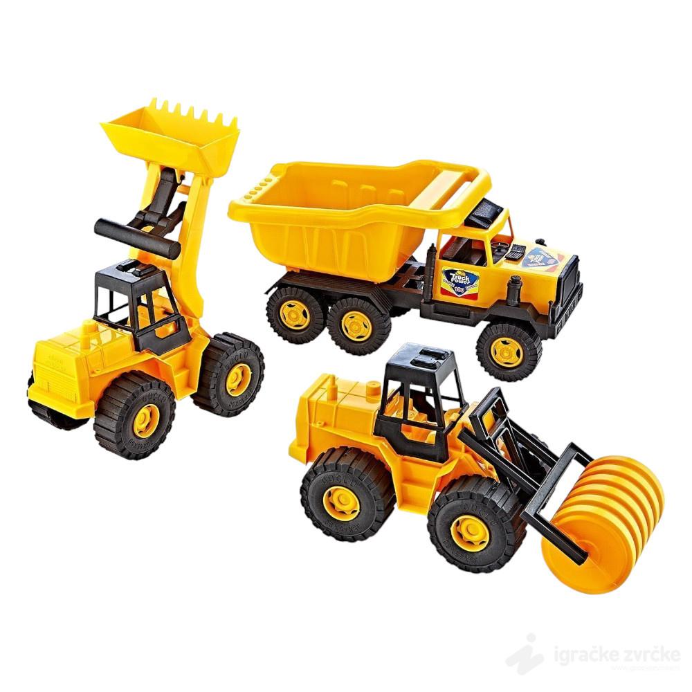 • Veliki set sa kamionom, bagerom i valjkom za ozbiljne gradjevinske radove