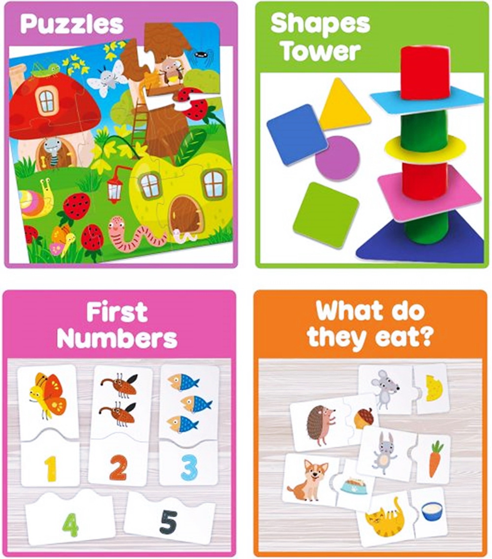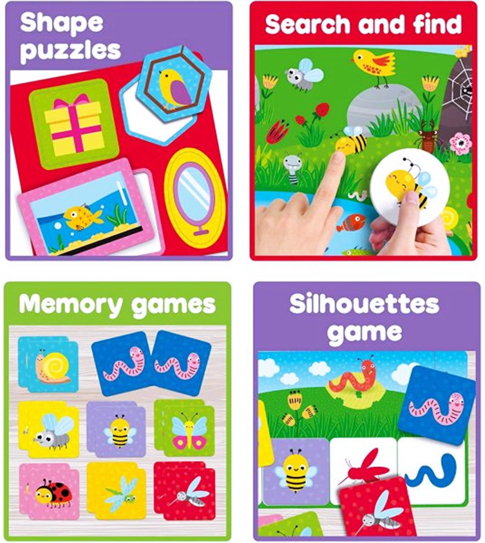 Bogat set za decu Carotina Edukativna igra 10 u 1 je savršen poklon za Vašu pametnicu. U pakovanju dobijate čak 10 edukativnih igara koje se jako zabavne i poučne. Ova kolekcija obrazovnih igara razvija logiku, motoriku, vid, dodir i još mnogo toga. Edukativni setovi za decu se preporučuju od najranijeg uzrasta. Carotina Edukativne igre 10 u 1 obuhvataju: