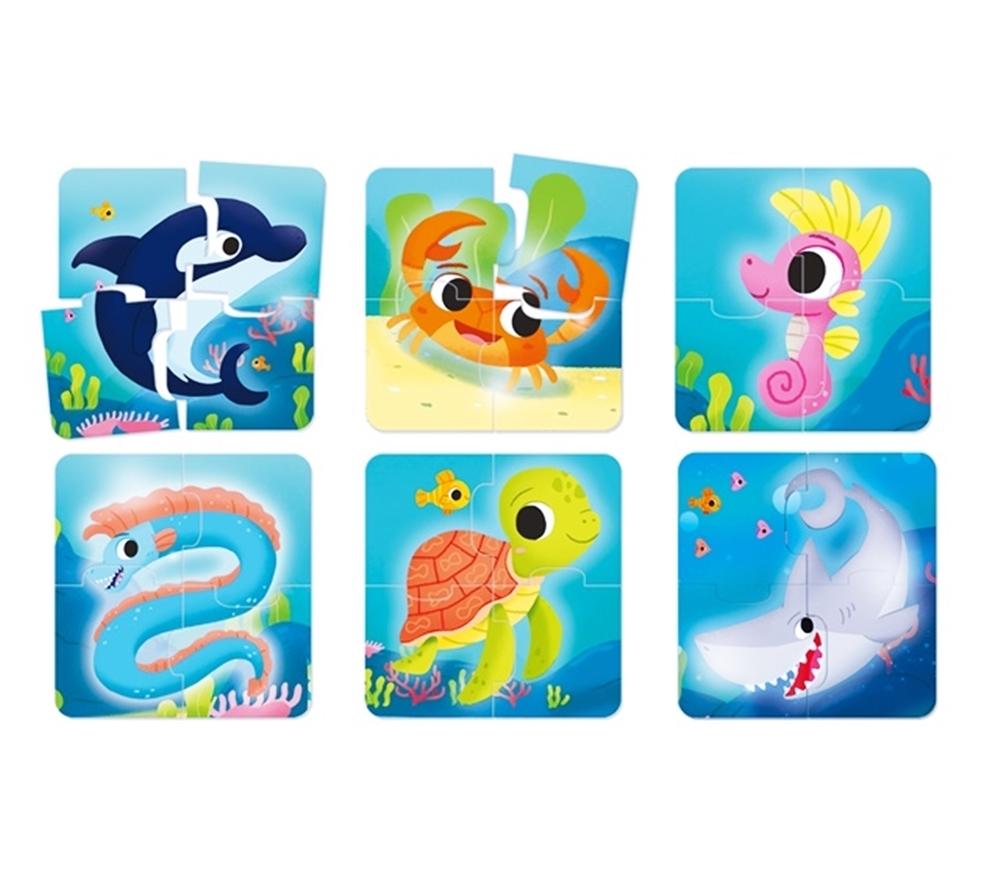 Carotina Edukativna slagalica Baby Morske životinje set od 8 slagalica iz 4 dela sa preslatkim morskim životinjama. Puzzle namenjene mlađoj deci napravljenih od kartona visokog kvaliteta i čvrstine. Dete će slagati baby puzzle, razvijati logično razmišljanje i učiti da prepoznavaje životinje. Set razvija logičko i vizuelno zapažanje kod dece. Preporučen uzrast 1-4 godine. Proizvedeno u Italiji.