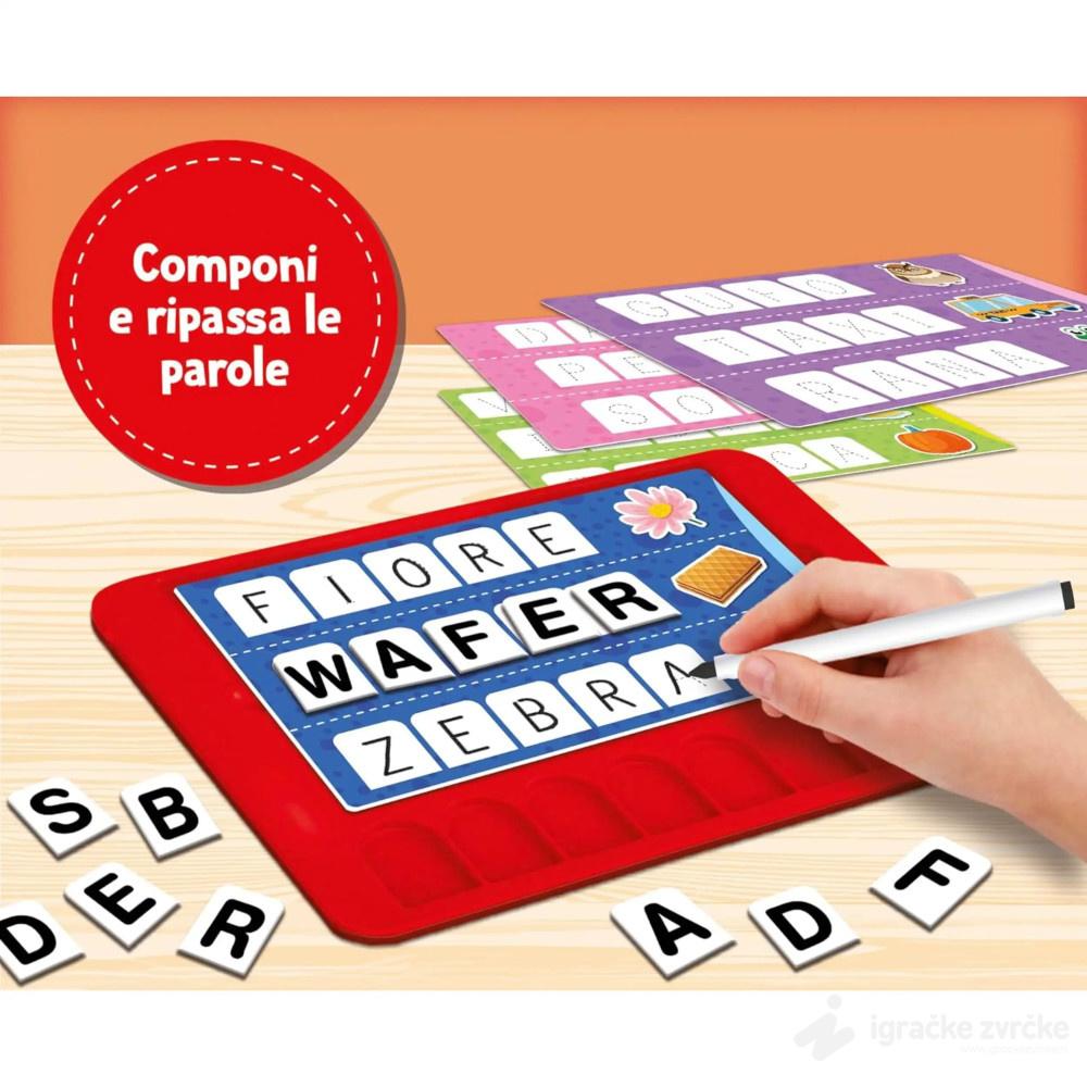 • Set sadrži bazu za pisanje i crtanje, tablu, slova, olovku koja govori, piši-briši markere, kartice, uputstvo