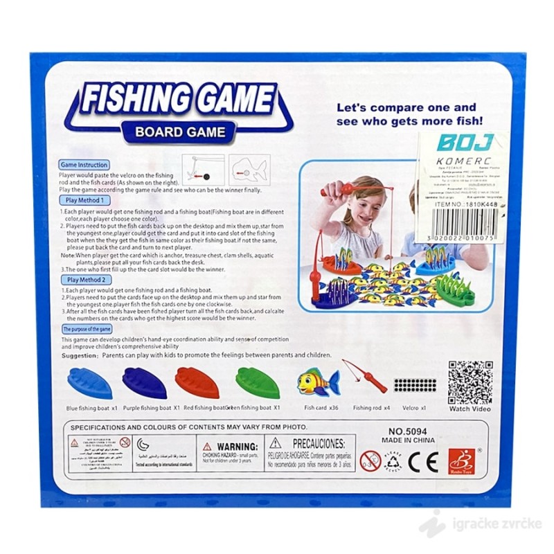 U kompletu dobijate četiri brodića, ribice i štapove za pecanje. Dete treba da upeca ribice u boji svog broda. Vaša deca će se sjajno zabaviti bez telefona.