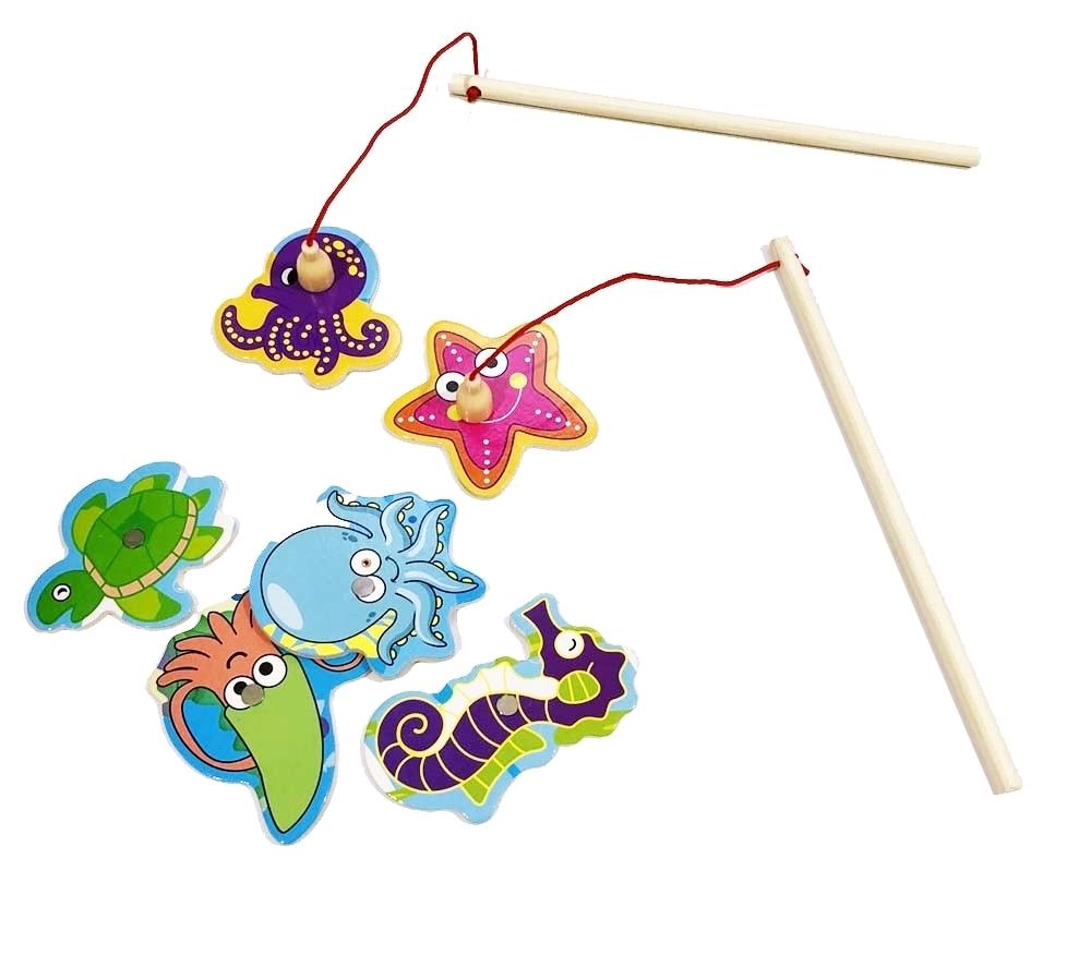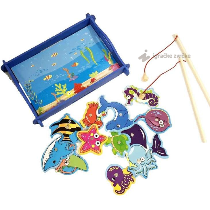 Omiljena drvena Igračka Pecanje ribica na maget koju ste možda i Vi imali kao deca i znate koliko ova igračka može da bude zanimljiva! Vesele ribice čekaju da ih upecate uz pomoć štapa sa magnetom. Lako, zar ne? E pa da je lako, pecanje ribica ne bi bilo zanimljivo!