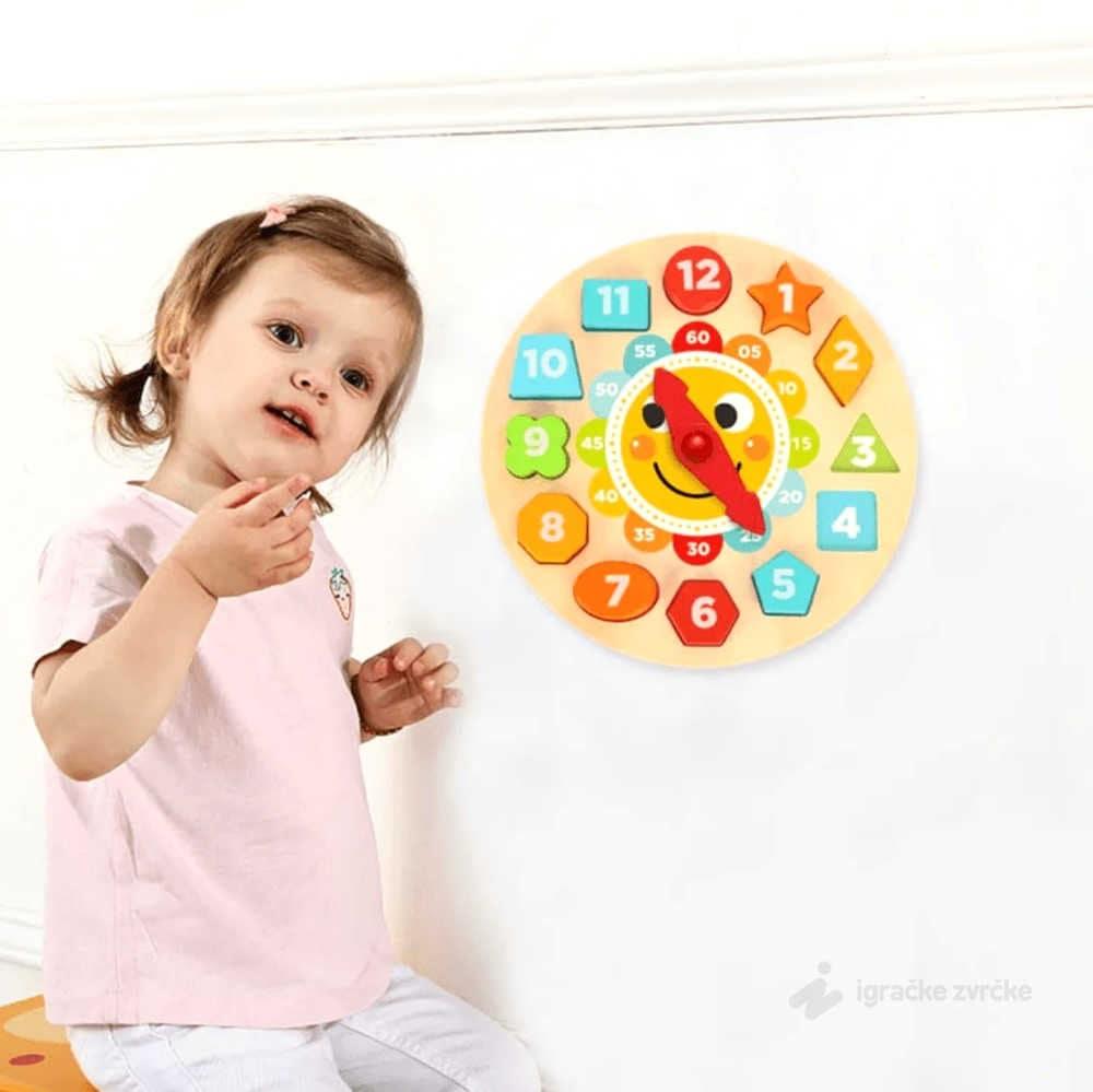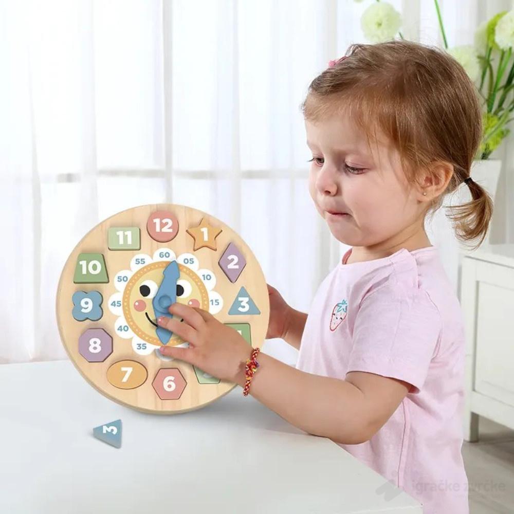 Da ne bi bilo dosadno, izvadite sve brojeve i neka ih dete slaže po obliku. Na taj način će naučiti redosled brojeva, vežbati finu motoriku i zabaviti se. Igračka za učenje gledanja u sat je napravljena od kvalitetnog drveta i bezbedna za igru.