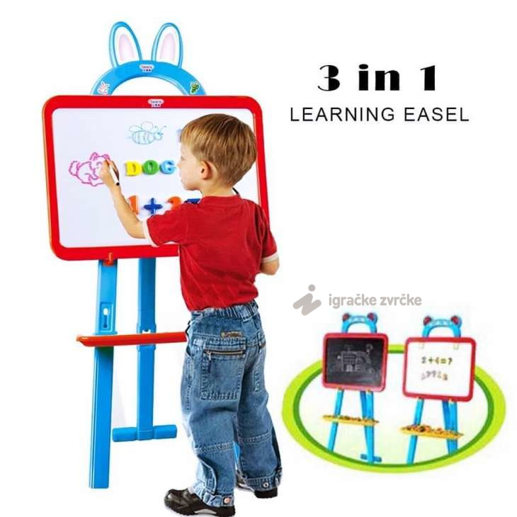 Dvostrana tabla za decu je napravljen od vrlo kvalitetne i izdržljive plastike veselih boja pa će se savršeno uklopiti u dečiju radnu sobu. Dvostrana Magnetna tabla za decu Learning easel 3u1 ima sjajne karakteristike koje ne smete da propustite kada je u pitanju školski program: