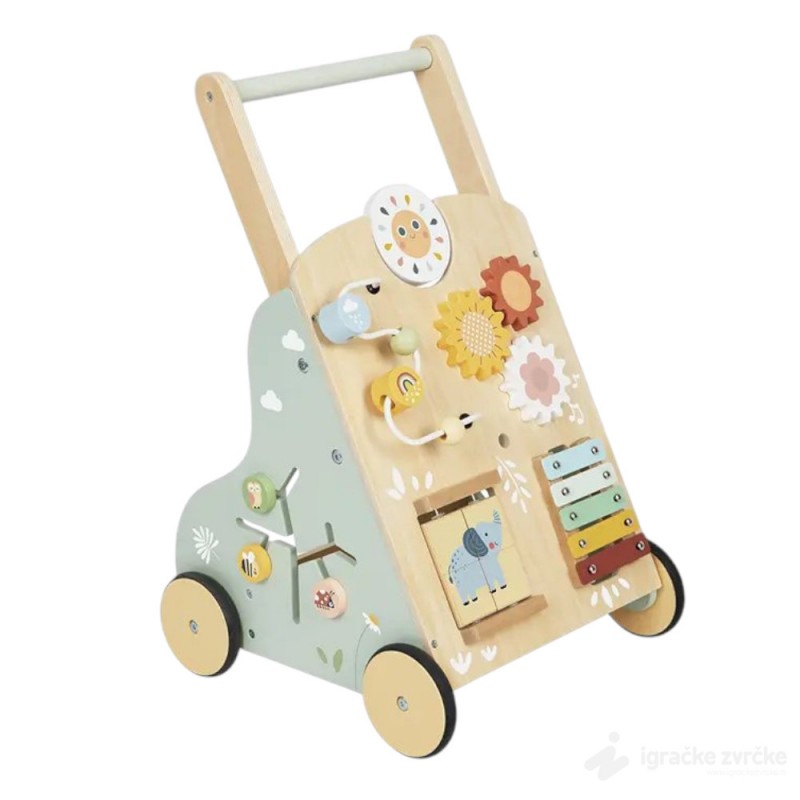 PRVA MONTESORI IGRAČKA Edukativna drvena prohodavalica MULTIFUN je sveobuhvatna ineraktivna igračka napravljena od kvalitetnog drveta sa raznim dodacima. Ova drvena hodalica nudi puno različitih aktivnosti koje će dete samo otkrivati i uz to se sjajno zabaviti.