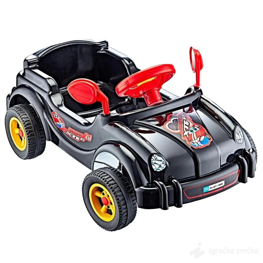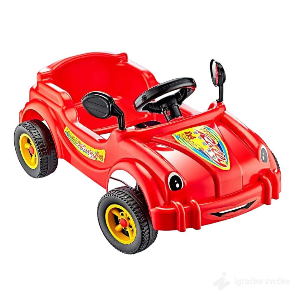 Auto ima udobno sedište, volan sa dodatkom retrovizora i čvrsta točkove koji obezbeđuju stabilnost tokom vožnje. Njegov simpatičan dizajn sa nasmejanim prednjim delom i sportskim detaljima dodatno oduševljava mališane i inspiriše ih na kreativnu igru. Zahvaljujući jednostavnom mehanizmu na pedale, dete samo kontroliše brzinu i kretanje, što doprinosi samostalnosti i osećaju sigurnosti.