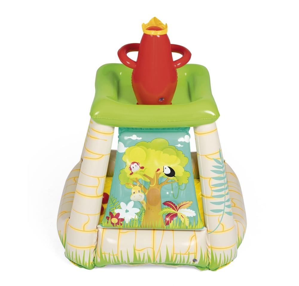 Igraonica za decu sa lopticama DŽUNGLA savršen je poklon za svako dete koje voli životinje i fizičku aktivnost. Dezen sa slatkim, razigranim scenama džungle na zadnjem zidu i svetle boje čine ovu igraonicu sa lopticama odličnim dodatkom bilo kojoj dečijoj sobi. Veličina ove igraonice na naduvavanje čini je idealnom za malu decu i savršenom za igranje više dece odjednom.