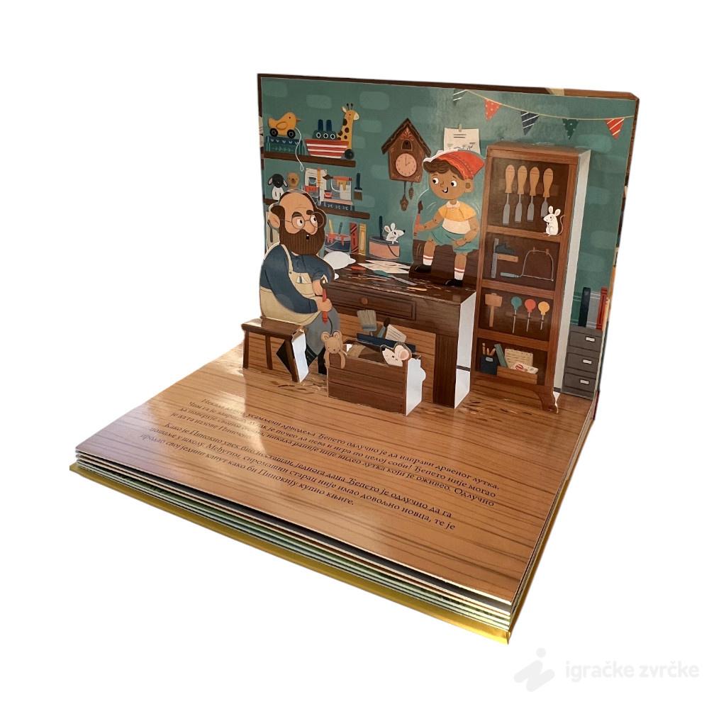 Uronite u čarobni svet jedne od najlepših i najpoznatijih bajki, uz iskakalice koje će oživeti uzbudljivu priču drvenog lutka Pinokia i starog drvodelje Đepeta