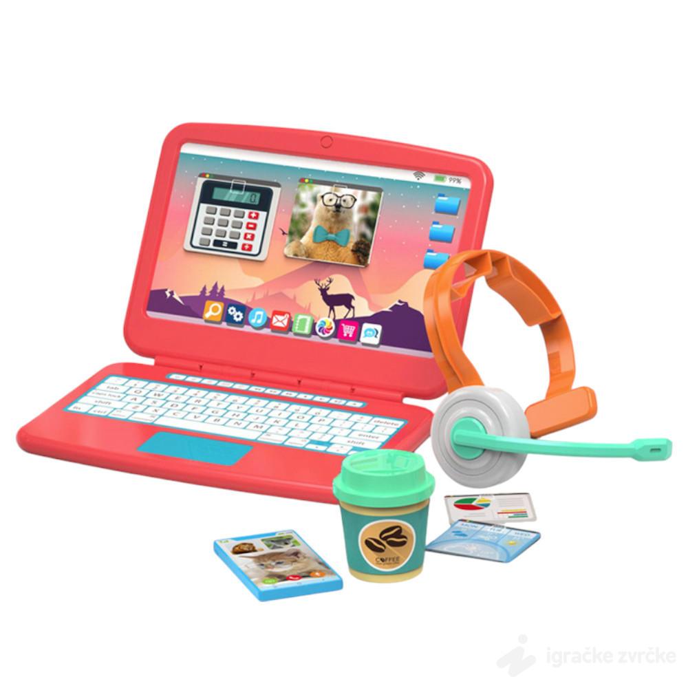 Sa simpatičnim laptopom, pomerljivim aplikacijama na čičak, slušalicama, pop-it kalkulatorom, blokčićem i olovkom, mališani dobijaju kompletno radno okruženje koje ih uvodi u svet odraslih, ali na zabavan i bezbedan način.