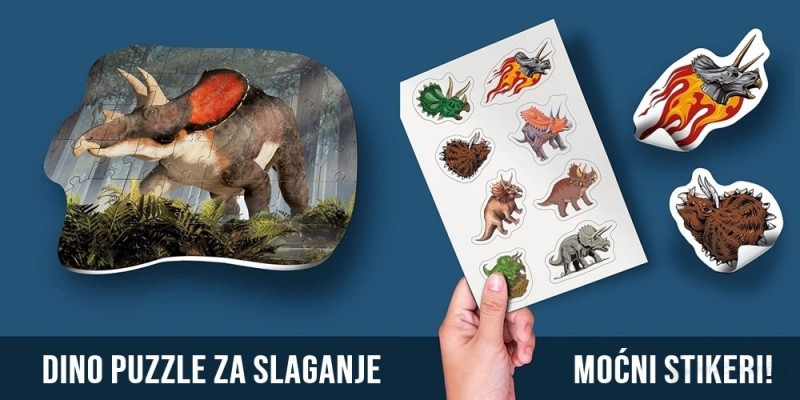KREATIVAN SET 3U1 Pored igre sklapanja, ovaj komplet ima i dva iznenađenja. U kutiji dobijate model Triceratopsa od plastike koji treba da sklopite. slagalicu i stikere. Deca će biti oduševljena ovim setom i dodacima.