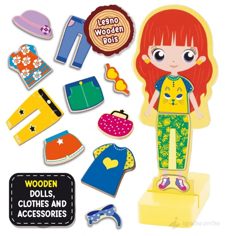 Montesori edukativna drvena igra Fashion Doll je zabavna igra gde dete treba da napravi razne odevne kombinacije. Stimuliše samostalnu igru, upotrebu ruku i razvoj mašte.