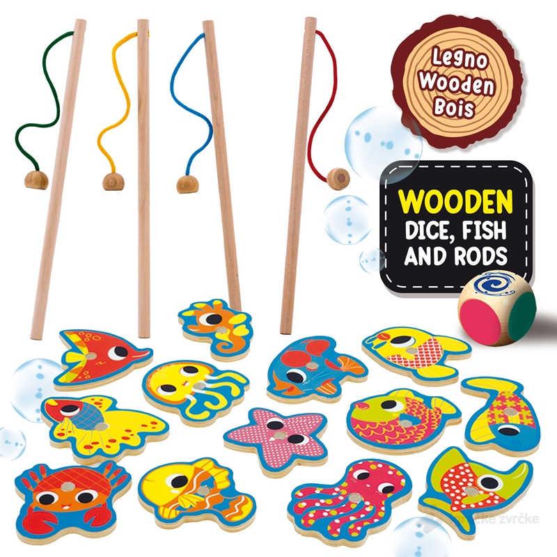 Montessori Drvena igra PECANJE daje deci priliku da upecaju ribu i zatim je pronađu na tabli i lagano spuste. Ovom igrom, dete razvija preciznost, finu motoriku, razmišljanje, povezivanje pojmova, taktilne sposobnosti i vezu oko-ruka.
