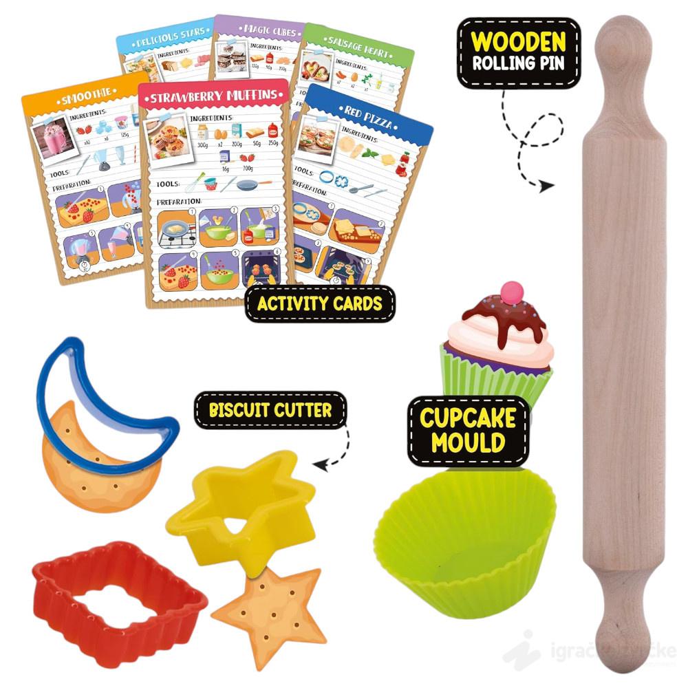 • Sadrži kalupe i alate za oblikovanje kolačića