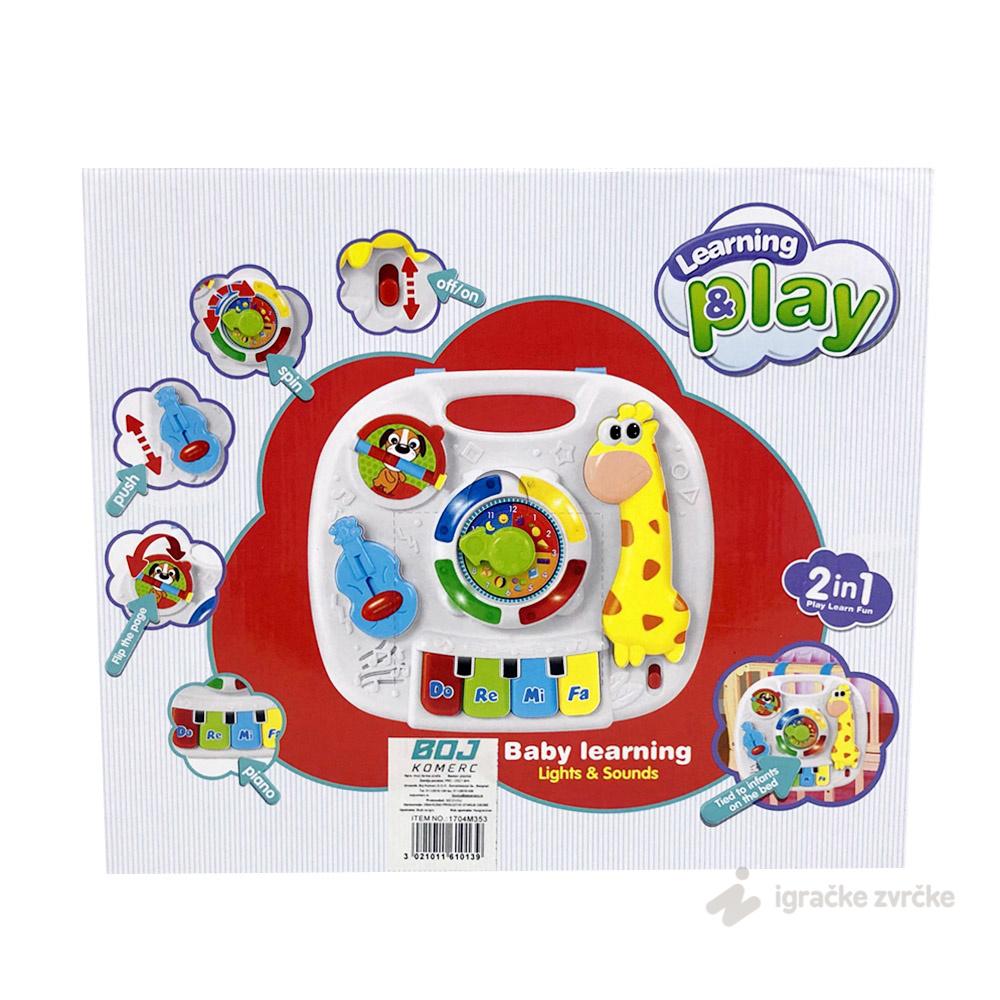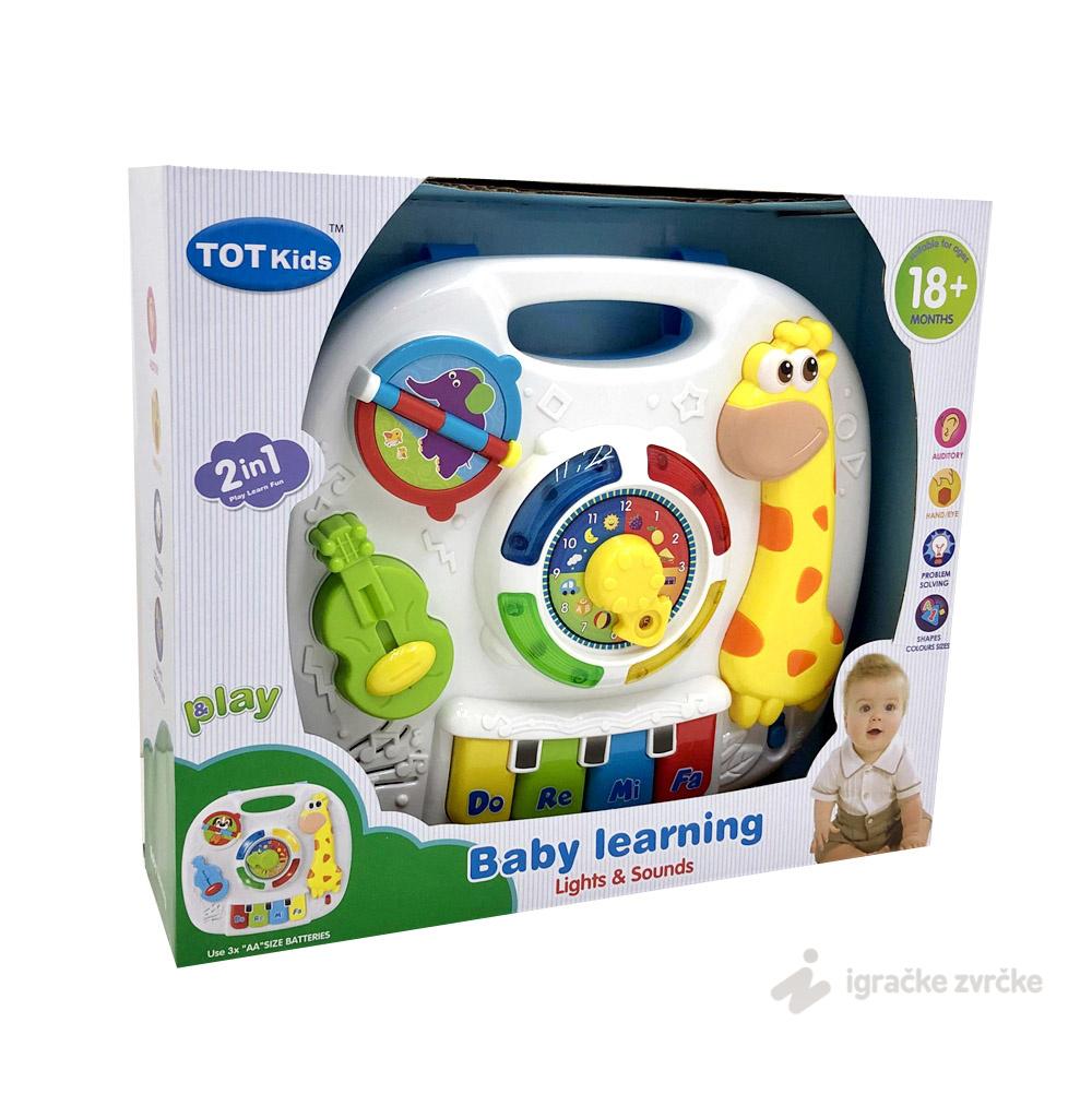 Muzička farma za bebe ŽIRAFA sa puno aktivnosti, zvučnim i svetlosnim efektima. Muzički sintisjzer za bebe će oduševiti svakog bebca. Preporučen uzrast: 18+ meseci. Dimenzije pakovanja: 24x23cm.