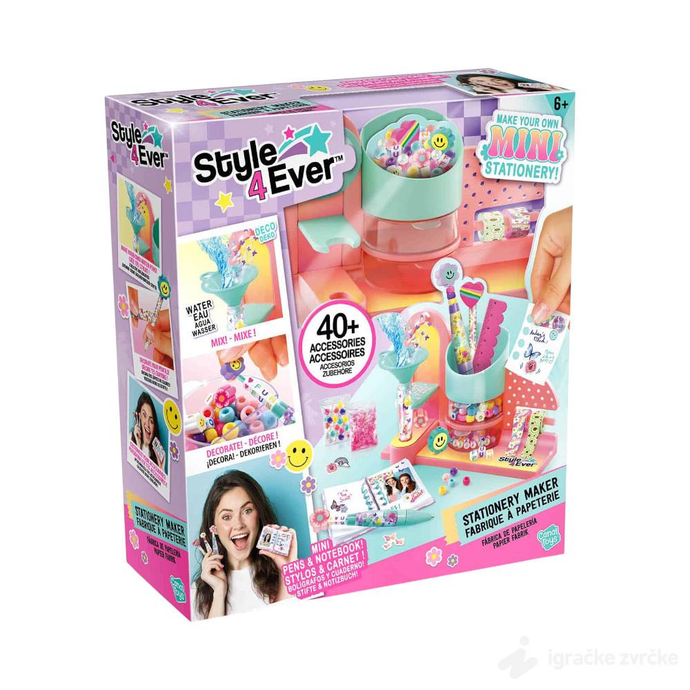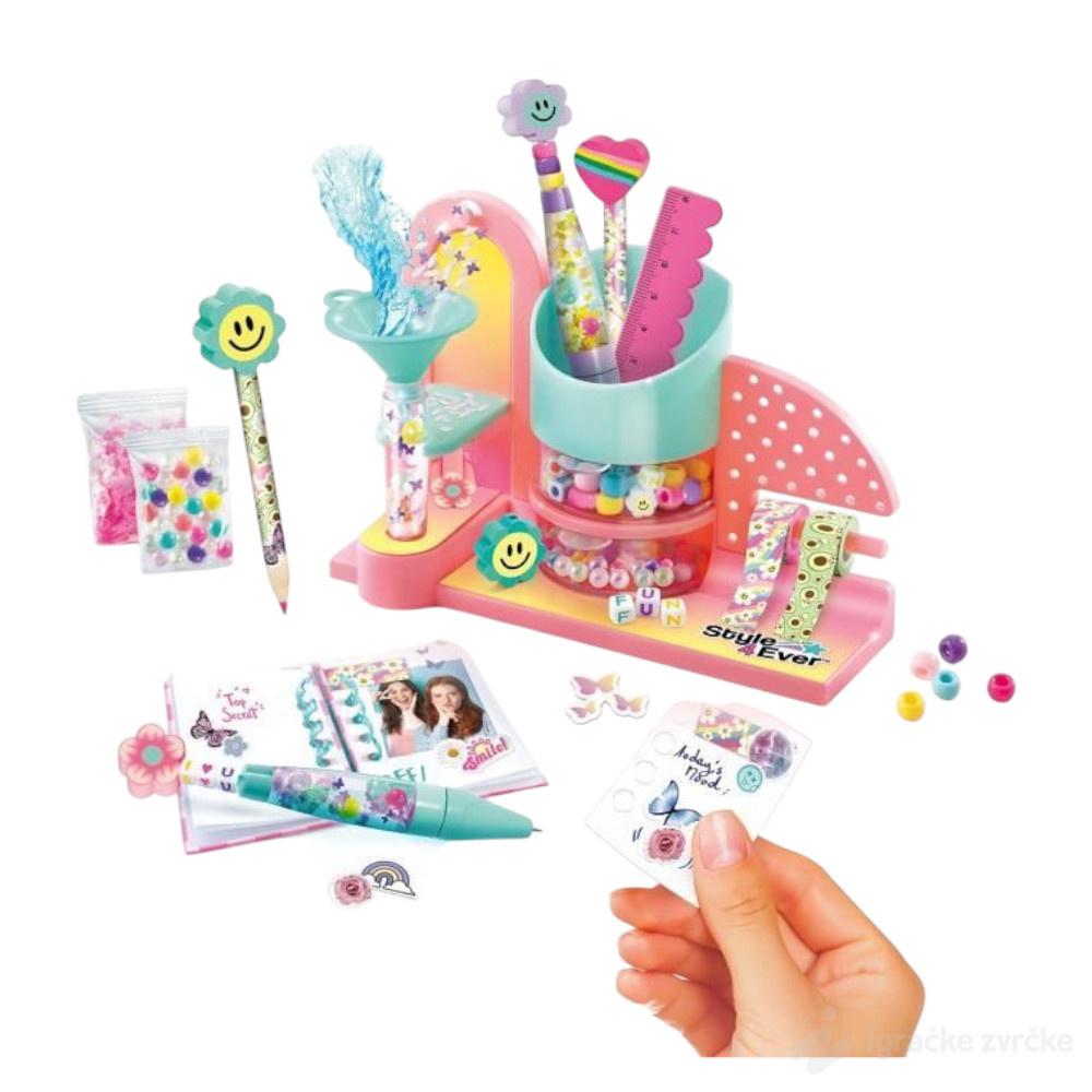 NAPRAVI SVOJ PRIBOR - Kreativni set ima sve što vam je potrebno da napravite svoj kancelarijski materijal. Izaberite jednu od svojih „uradi sam“ olovaka i napunite je ukrasima za kul efekat, a zatim ukrasite perlama i slatkim gumicama različitih oblika! Možete dodati traku i gumice da ukrasite svoje bojice i koristiti ih za pisanje ili crtanje u priloženoj mini svesci! Uključeno je i mnoštvo nalepnica za personalizaciju vaših zapisa u svesci, tako slatko. Uzrast od 6 godina.