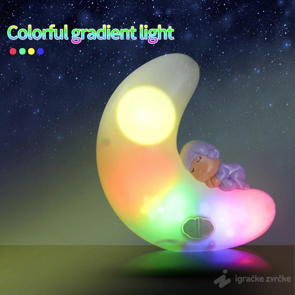 • Mesec blago svetli i proizvodi zvukove, jako je prijatan i ne smeta ni odraslima da spavaju