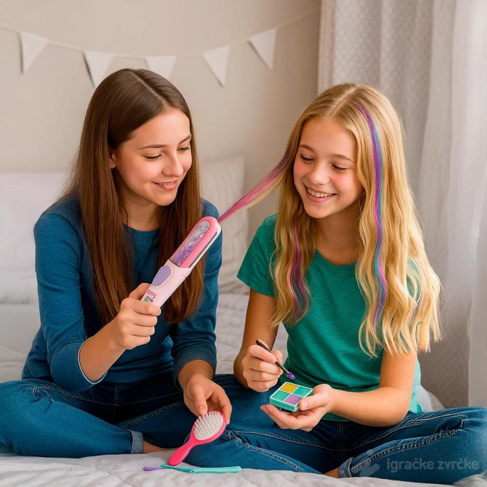 Ovaj set je odličan izbor za devojčice koje vole da eksperimentišu sa frizurama i bojama. Privremene kredice za kosu omogućavaju promenu izgleda bez trajnog farbanja, što ga čini bezbednim i praktičnim.