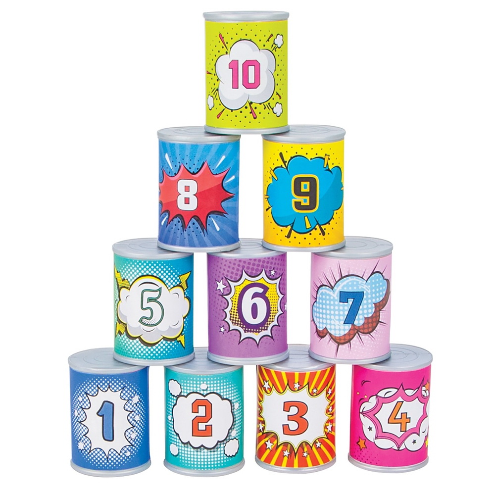 Obori Konzerve Set za igru će zabaviti i aktivirati Vaše mališane. Idealna igračka za sobu i kišno vreme. Podstiče zajedničku igru i takmičarski duh. Cilj igre je da dete pogodi lopticom naslagane konzerve i obori što više njih. Ovakve igre vežbaju koordinaciju pokreta, spretnost, ravnotežu i ciljanje. Društvena igra Obori konzerve ima 14 delova: 10 plastičnih konzervi i 4 loptice. Dimenzije pakovanja su 30x22cm.