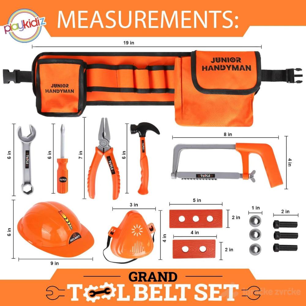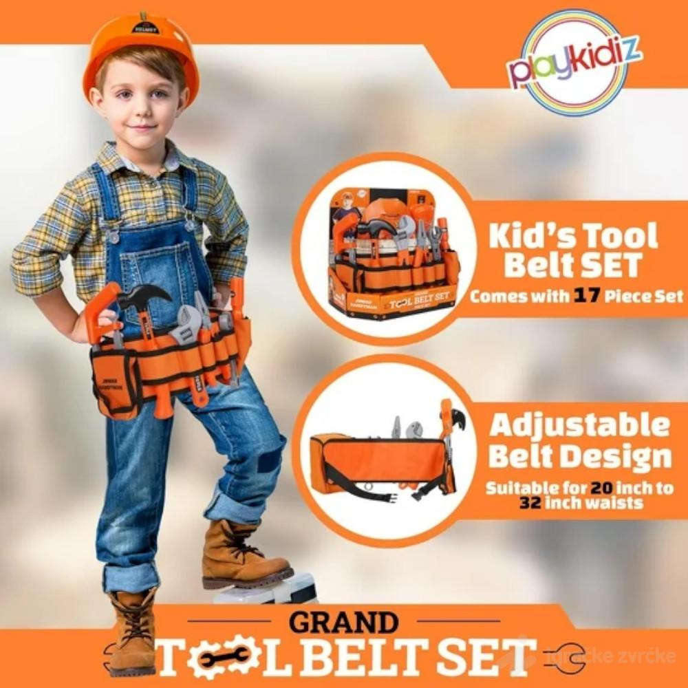 Pojas za alat je mekan, udoban i potpuno podesiv, tako da svaki mali majstor može da ga nosi kao pravi profesionalac. U kompletu se nalaze i šlem i zaštitna maska, koji dodatno podstiču igru uloga i osećaj važnosti tokom „radova“.