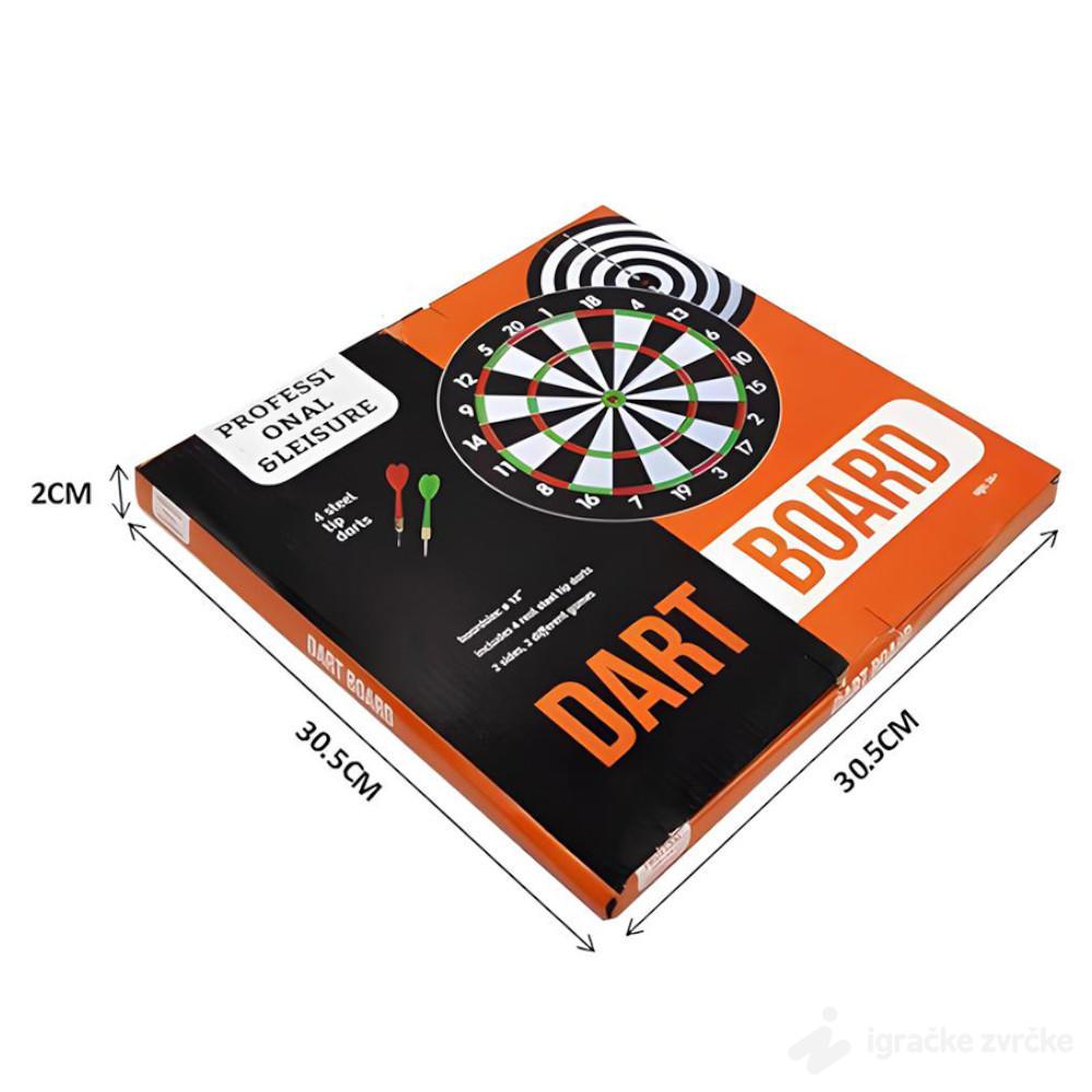 Prečnik table je oko 30 cm, što je idealna veličina za kućnu upotrebu, a metalni vrhovi strelica obezbeđuju dobro prijanjanje i autentičan osećaj tokom igre. Dolazi sa šest strelica i rezervnim perajima, što omogućava dužu upotrebu i prilagođavanje stila igre.
