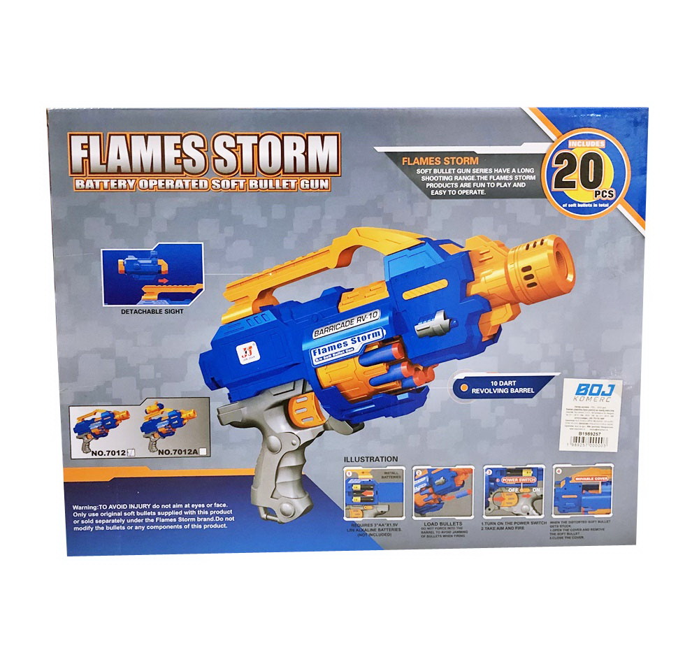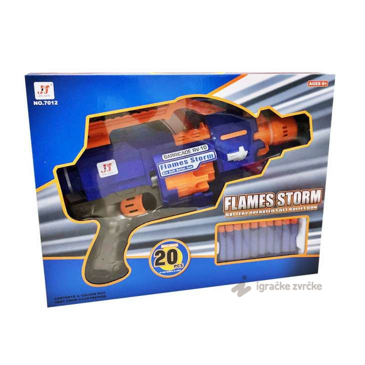 U ovom kompletu dobijate sjajno dizajniran pištolj, 20 metaka i metu. Ovaj moćan Pistolj sa sundjerastim metkovima radi na baterije što će igru učiniti još zanimljivijom! Obradujte Vašeg Zvrka ovom kvalitetnom igračkom! Dimenzije pakovanja su 40x30cm.