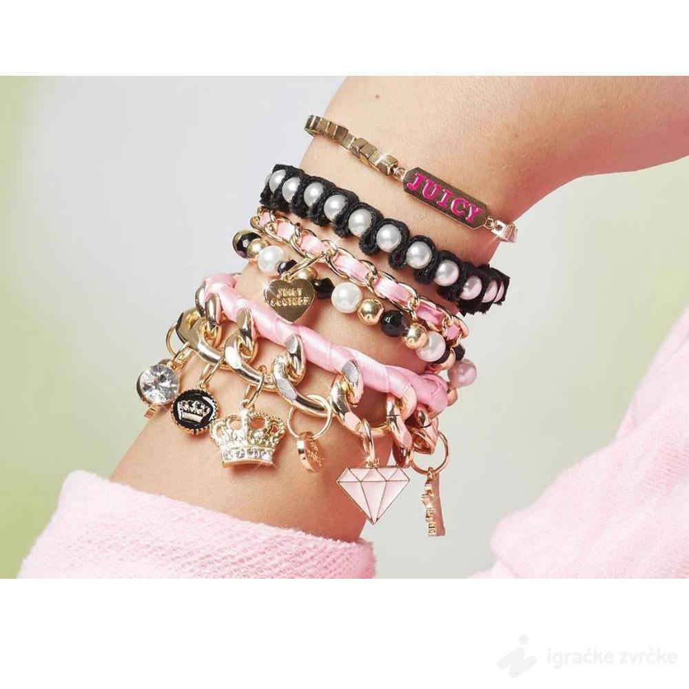 Set Juicy Couture Chains & Charms pruža deci priliku da naprave sopstvene luksuzne narukvice uz dodatak glamuroznih privezaka. U kompletu se nalazi sve što je potrebno da nastanu 5 unikatnih narukvica – od sjajnih lanaca, perlica i traka, do 12 prepoznatljivih Juicy Couture privezaka u zlatnoj boji. Deca mogu kombinovati različite stilove i stvoriti nakit koji je istovremeno trendi, kreativan i potpuno njihov.