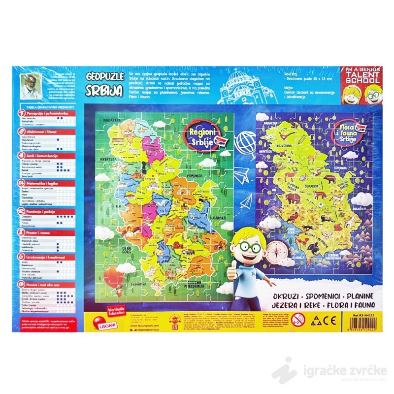 - Slagalica SR 60pcs Liscaini Geopuzle Moja Srbija 2u1 Lisciani