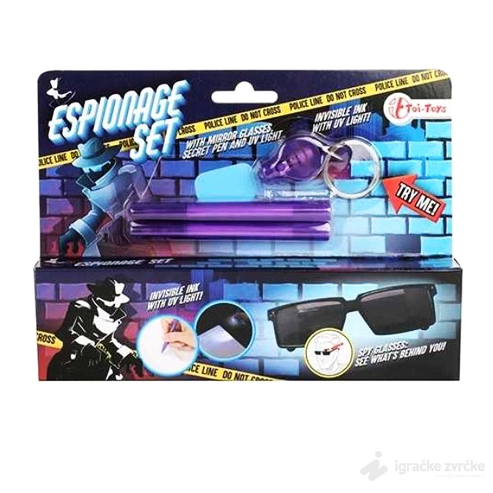 Sadržaj: Naočare sa ogledalom, olovka sa nevidljivim mastilom i UV lampa. Preporučen uzrast: 6+. Otkrijte svet tajni uz naš vrhunski špijunski set!