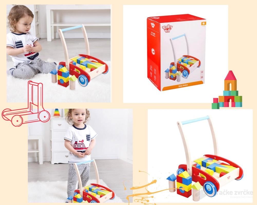 • Drvena kolica-šetalica sa kockama raznih boja