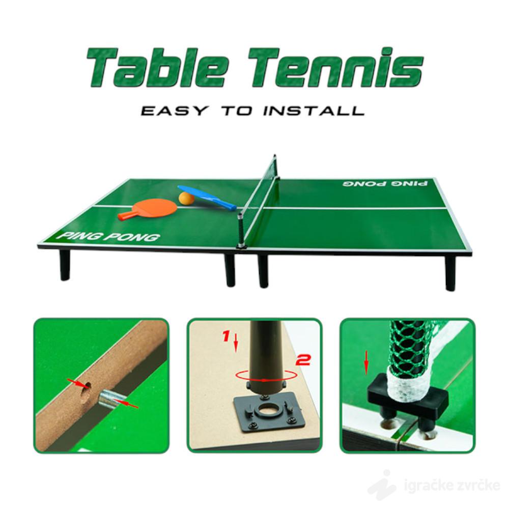 Ovaj praktičan stoni ping pong set osmišljen je tako da pruži pravu sportsku dinamiku u mini formatu. Zahvaljujući čvrstoj konstrukciji i dimenzijama pogodnim za sve ravne površine, deca i odrasli mogu odmah da započnu igru.