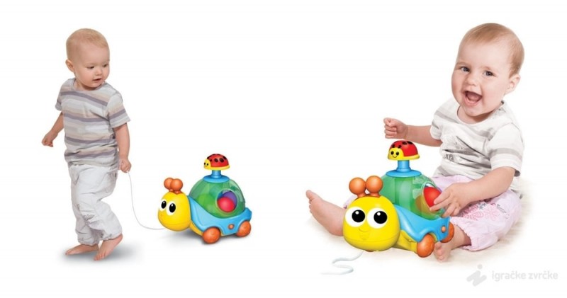 Kada dete pritisne bubamaru na vrhu igračke, loptice unutra počinju da se okreću. Ovo jako zabavlja bebe i one mogu dugo sedeti i igrati se same ovom igračkom. Podstiče upotrebu ruku i sedenje.